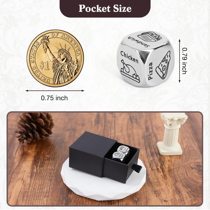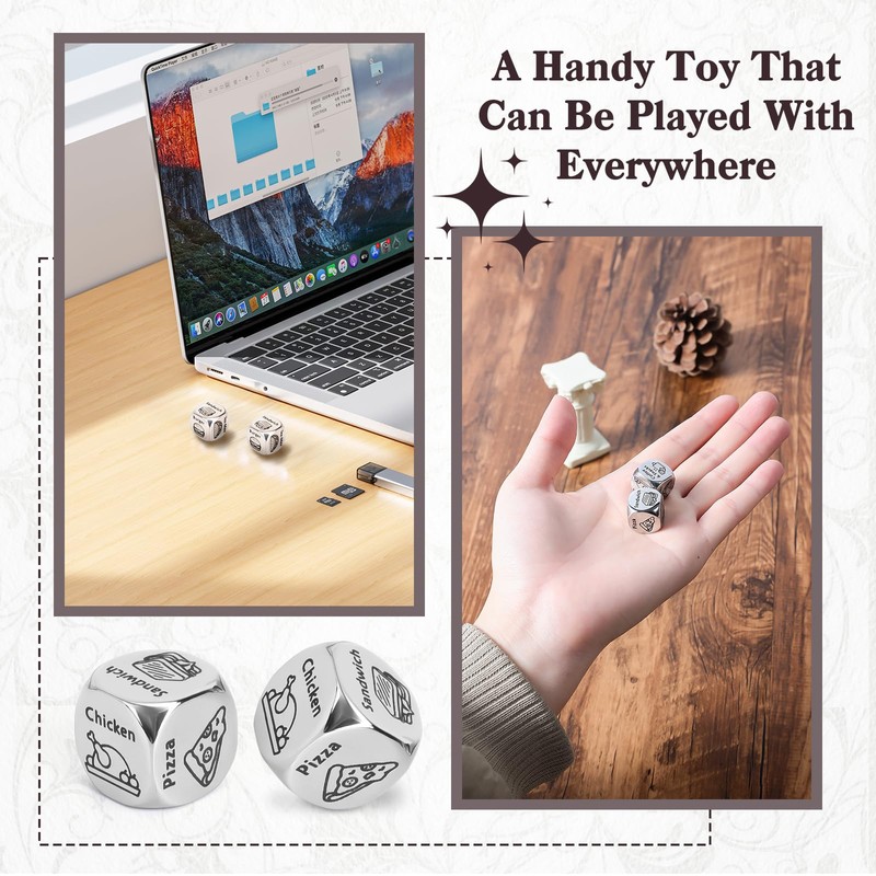 NAYSAYE Games Dice Set, Date Night Dice Game, Funny Food Decision Dice, Unique Metal Dice Set Gifts, Valentine's Day Gifts for Boyfriend/Girlfriend, 2 Pcs