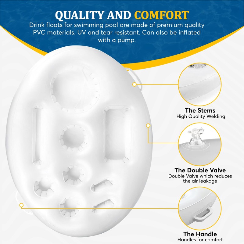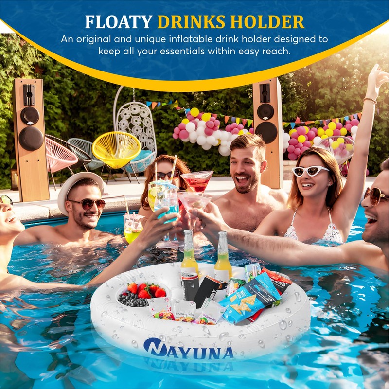 NAYUNA Floating Food & Drinks Holder for Pool and Hot Tub - Premium White Floating Bar, Pool Drink Floats, and Phone Slot - Versatile Floating Tray for Pool Parties, Beach, and Hot Tub