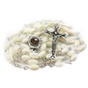 - Mother of pearl beaded catholic necklace with white beads, classic communion rosary total length of 21".