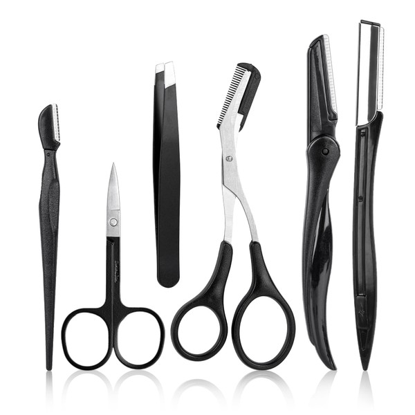 NAZQAT Eyebrow Kit - Multipurpose Eyebrow Grooming Kit For Women & Men For Eyebrow Trimming, Shaping, And Exfoliating - Includes Eyebrow Tweezers, Eyebrow Razor Tools, Eyebrow Scissors (Pack of 6)