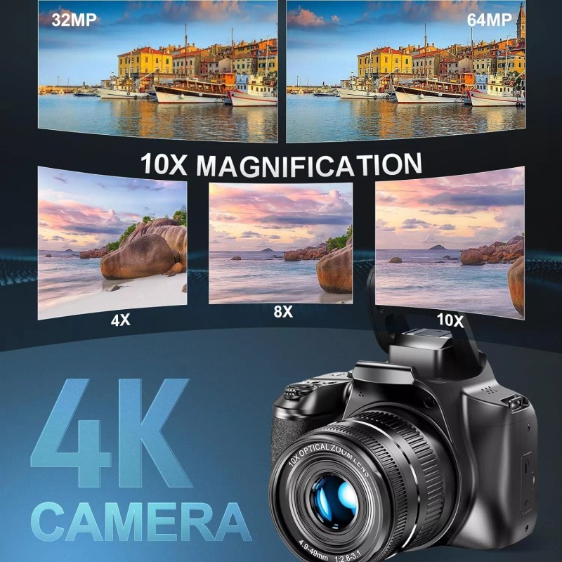• 【4K & 64MP Optical digital cameras for photography】This digital camera equipped with a 64-megapixel sensor, ensures stunning picture quality in remarkable detail. Capture all your unforgettable moments effortlessly with its maximum 4K/30FPS (MP4) video resolution.