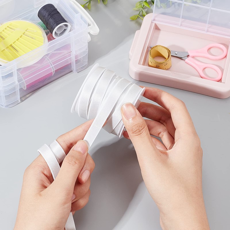 NBEADS 10.94 Yards(10m) Bra Strap Elastic, 10mm Flat Elastic Bra Strap Polyester Elastic Band Stretchable Adjustable Cord Ribbon for DIY Shoulder Bra Clothes Waistband Sewing Project, White