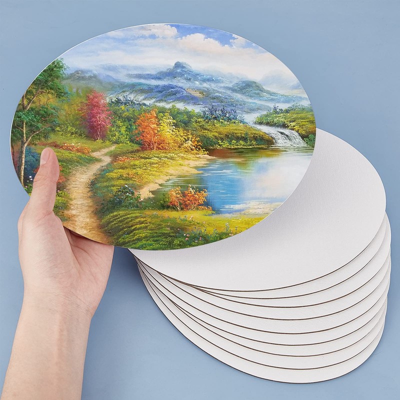- Package Contents-- 10 pcs canvas panels in oval shape, size are about 24cm wide, 18cm long, 0.3cm thick, which can meet your painting need.