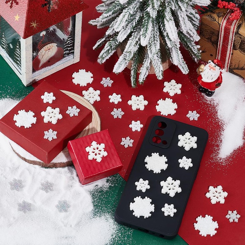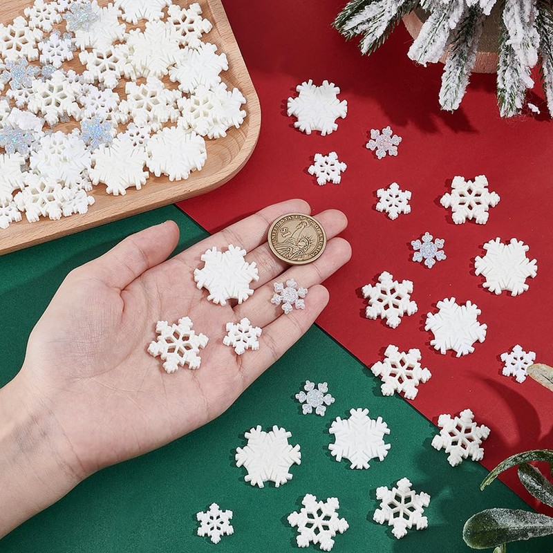 - Christmas Decorations: These snowflake resin charms can be a great way to embellish your winter Christmas decorations projects such as Christmas crochet projects, greeting cards, diy gingerbread houses, mini Christmas tree snowflake decorations, gift wrapping, hair ribbons or cards, buttons, etc, to bring you a great Christmas atmosphere