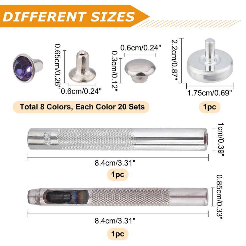 - 10 Colors -- There are 10 colors of rivets, 20 of each color. You can choose different colors of rivets for DIY according to your preferences.
