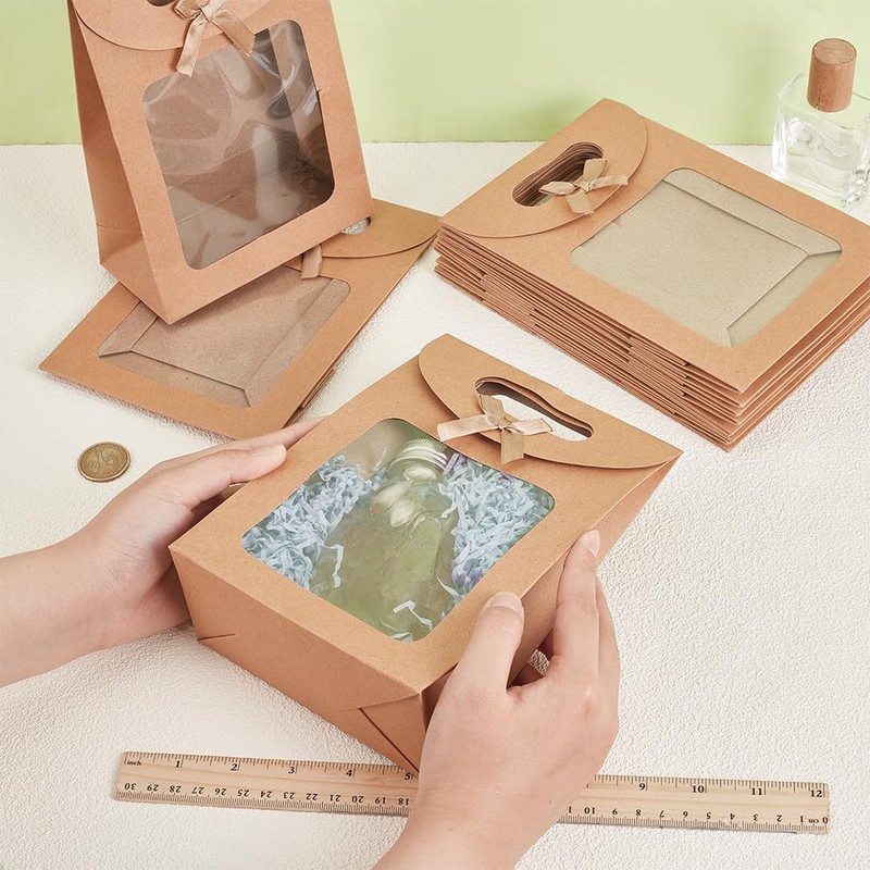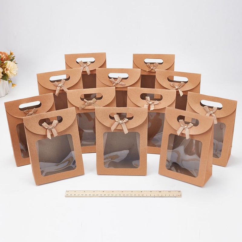 - Thoughtful Design: Our paper bags are not only designed with sturdy handles for easy portability, but also have transparent windows to clearly display the contents of the paper bags. And the paper bag is self-supporting design, which can ensure that everything inside can stay upright