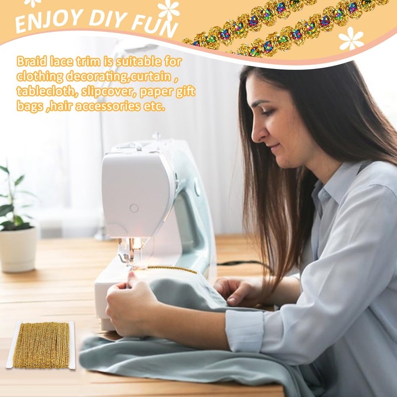 - Wide Applications -- This gold lace can be used for different styles of garment decoration, perfect for DIY crafts, suitable for headbands, bracelets, necklaces, purse handles, scrapbooking, curtains, blankets, pillows, bedding, home decor and more