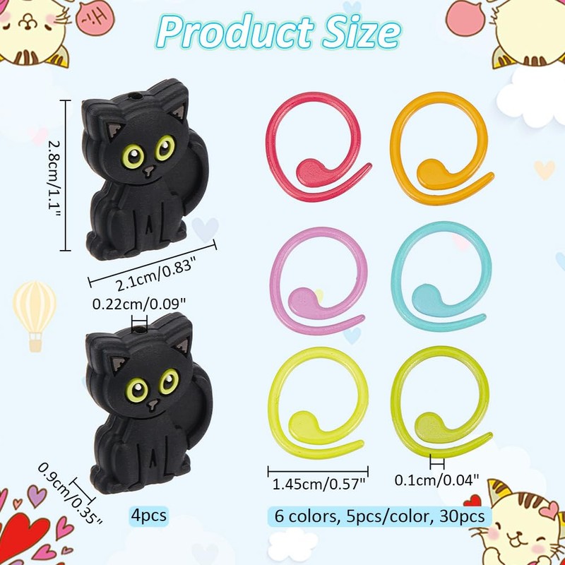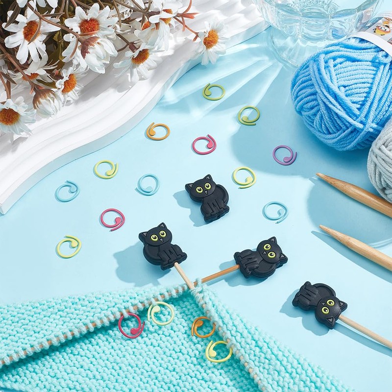 - Knitting Needle Stoppers -- Designed in the shape of cats, these needle stoppers are brightly colored and easy to identify, these cute needle stoppers are a wonderful addition to your knitting supplies and are easy to use, easily fitting over the head and tail of your needles