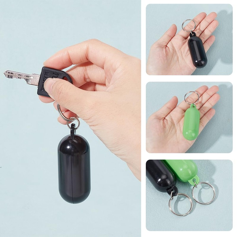 nbeads Pack of 4 2 Colours Floating Plastic Key Ring, About 8.9 cm Long, Pill Shape, Floating Key Ring, Floating Key Holder for Boating, Fishing, Sailing and Outdoor Sports