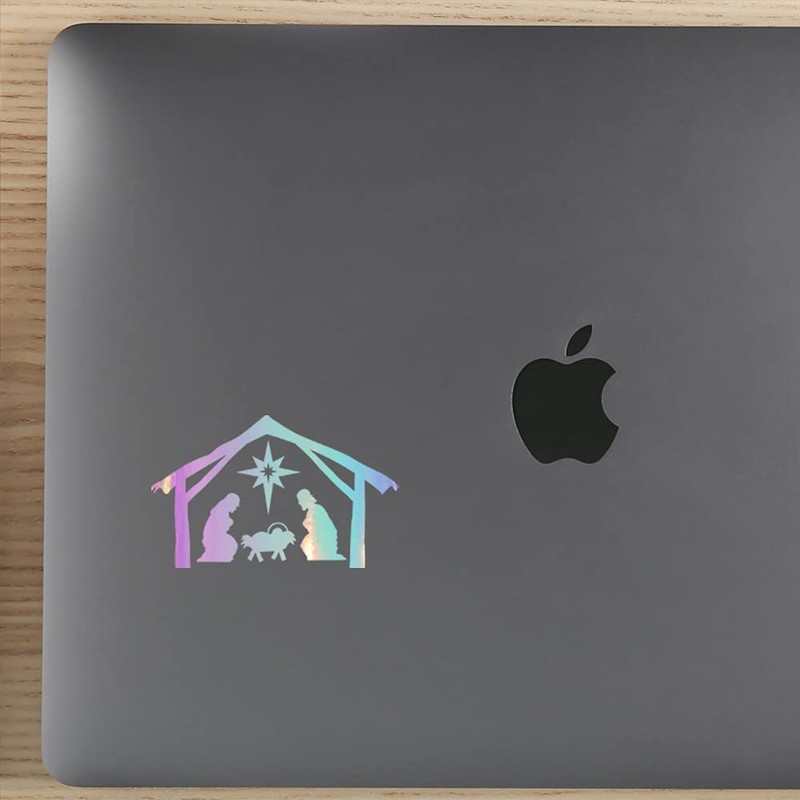 NBFU Nativity Baby Jesus Christian Christmas 2 (Holographic Opal Purple) (Set Of 2) Premium Waterproof Vinyl Decal Stickers For Laptop Phone Helmet Car Window Bumper Mug Tuber Cup Door Wall Decoration