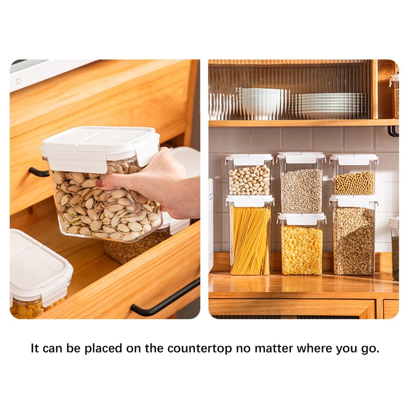 - Food Storage Containers can hold pasta, baking ingredients, or other pantry staples; save space and keep pantry organized