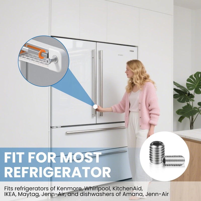 - 【Wide Application】Newly upgraded set screws for most refrigerator handle mounting. Applicable to refrigerators for Kenmore, Whirlpool, KitchenAid, Ikea, Maytag, Jenn-Air, and dishwashers for Amana, Jenn-Air. Replacement part numbers: W11366418, PD00059403, AP6888139, WPW10010140, PS12723933, W10114271, W10664010, W10010140, W10223573