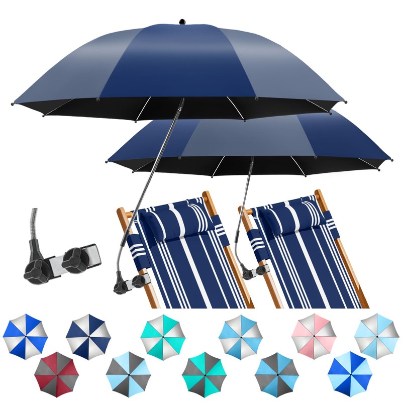 NBtoUS 2 PACK Chair Umbrella with Clamp, 360 ° Adjustable Umbrella for Chair, UPF50+ for Beach, Patio, Camping, Golf Carts(Ink Blue/lron Gray, Not Include Chair)