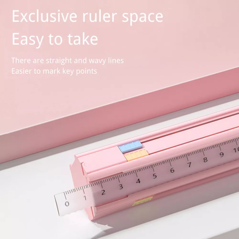 【Practical Design】The pencils can be removed from the 6-color buttons. The ruler and eraser are also easy to find in their fixed positions in the pencil case. And a detachable pencil sharpener at the bottom. It's fashionable and practical.