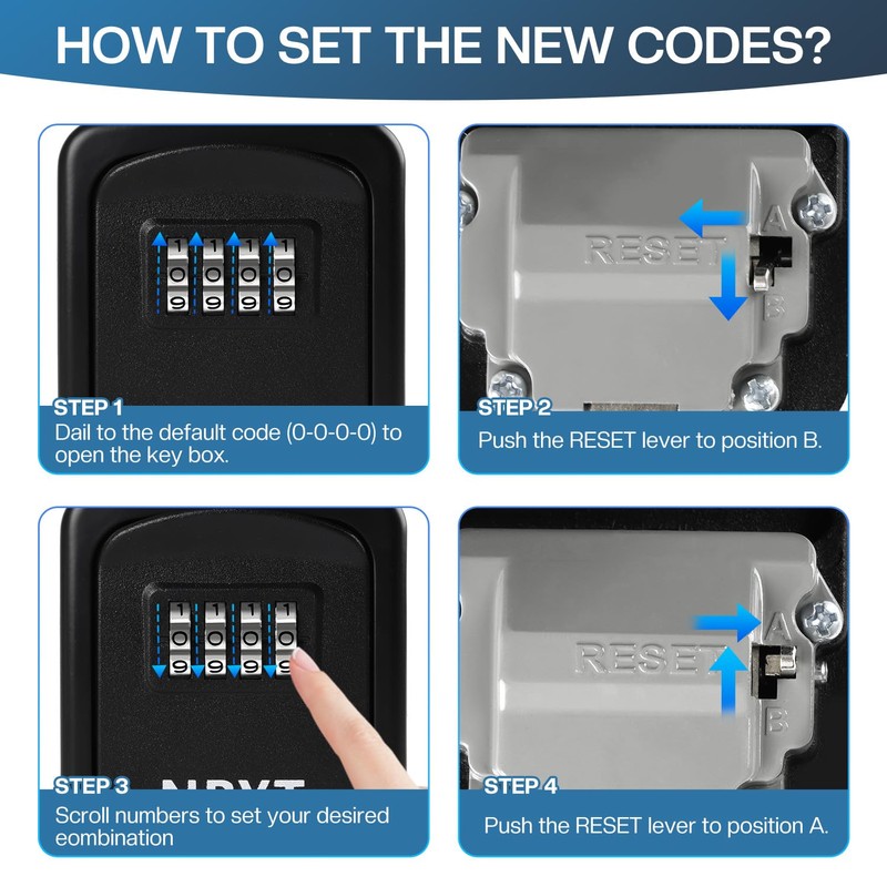 - Safe and easy to set: This key lock box is a 4-digit adjustable combination lock that offers 10,000 combinations, improves safety and significantly reduces the risk of speculation. And setting up your own code is also easy.