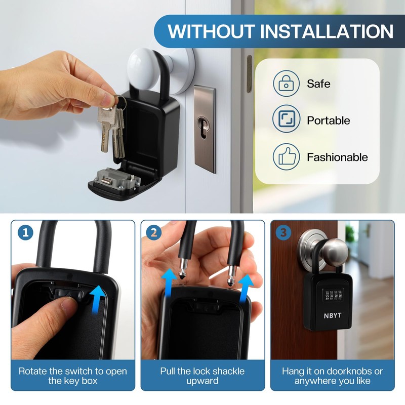 - 【Weatherproof】: This lock box is rust-proof, corrosion-resistant and waterproof, making it very suitable for indoor and outdoor use.