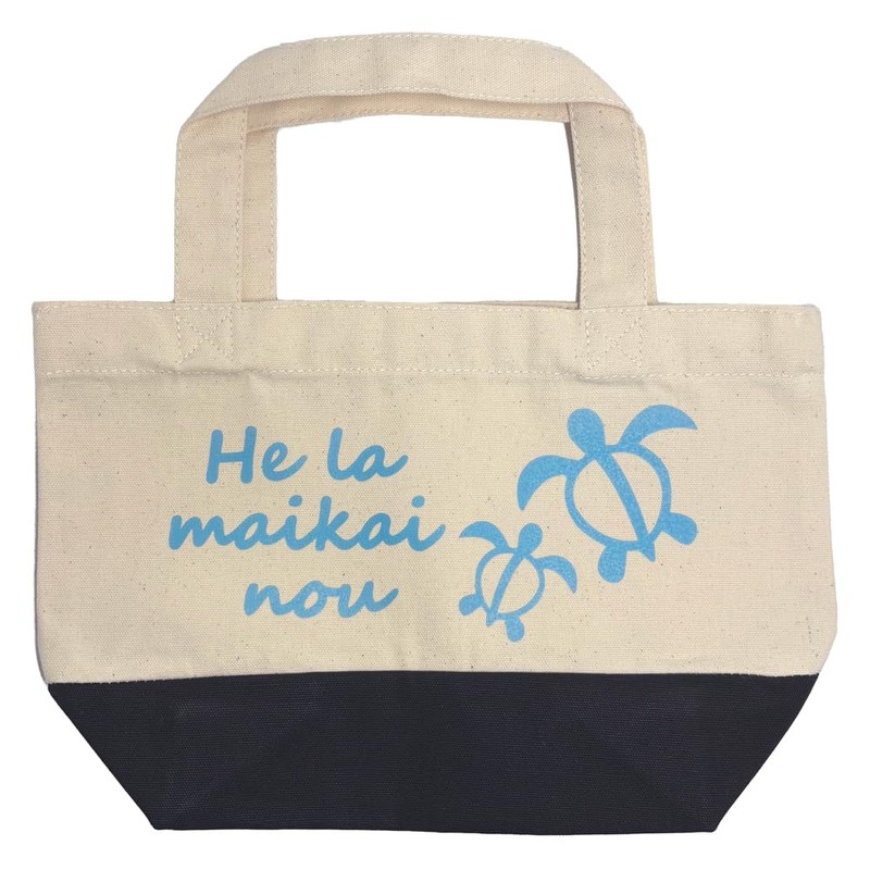 Small canvas tote bag. Perfect for storing lunch boxes or going out for a little bit of fun. Cute Honu and Hawaiian print He la maikai nou is Hawaiian for a good day. This tote bag is "Let's have a good day! " It is a beautiful Hawaiian language with a gentle voice.