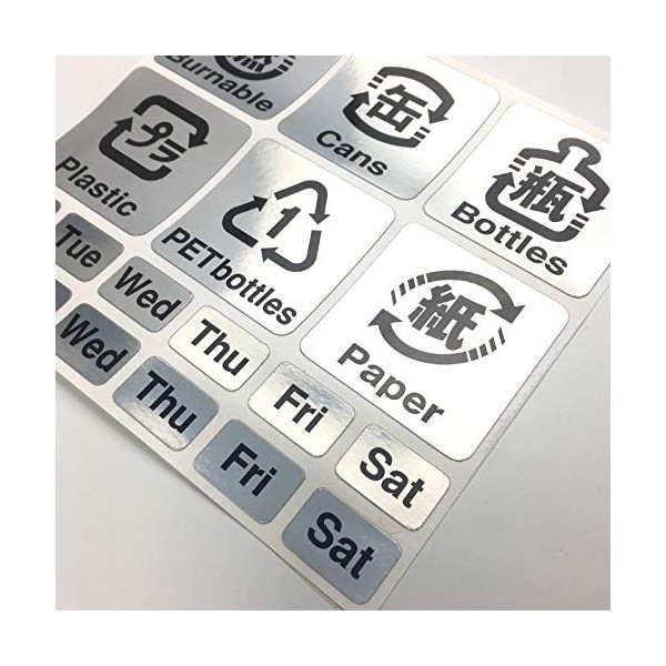 nc-smile Trash Can Seal, Sticker, Resource Sorting, Recycled, Water Resistant, Laminated, Trash Can, Dust Box, Kitchen, Kitchen with Day of the Week Sticker (Metallic Silver, Gothic Letters)