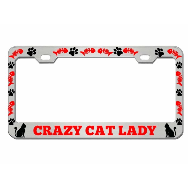 NCAT Crazy Cat Lady Cat Lovers Design Metal Car License Plate Frame Auto Tag Holder