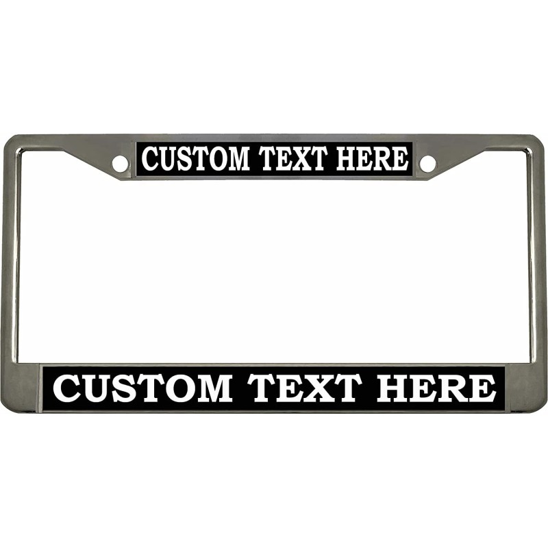 Get everyone's attention with this cool chrome plated license plate frame made of sturdy heavy metal and personalized with weather/car wash resistant vinyl that is waterproof/UV protected. It won't fade and will last for many many years. It is also a great gift item. It weighs about 9oz and measures 12" x 6" the frame is brand new and it's well packaged. The distance between two holes is about 7 inches. The frame fits all standard USA and Canada 12x6 license plates and can be used for the front or the back of a car.