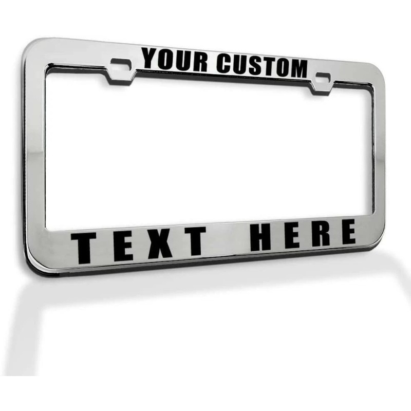 Get everyone's attention with this cool chrome plated license plate frame made of sturdy heavy metal and personalized with weather/car wash resistant vinyl that is waterproof/UV protected. It won't fade and will last for many many years. It is also a great gift item. It weighs about 9oz and measures 12" x 6" the frame is brand new and it's well packaged. The distance between two holes is about 7 inches. The frame fits all standard USA and Canada 12x6 license plates and can be used for the front or the back of a car.