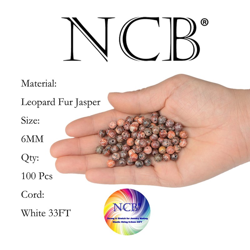 NCB 100pcs Original Natural Stone Beads Gemstone Round Loose Beads 6mm Genuine Real Stone Energy Beads for DIY Jewelry Making, Stretch Unisex (Red Leopard Fur Jasper, 6mm 100Beads)