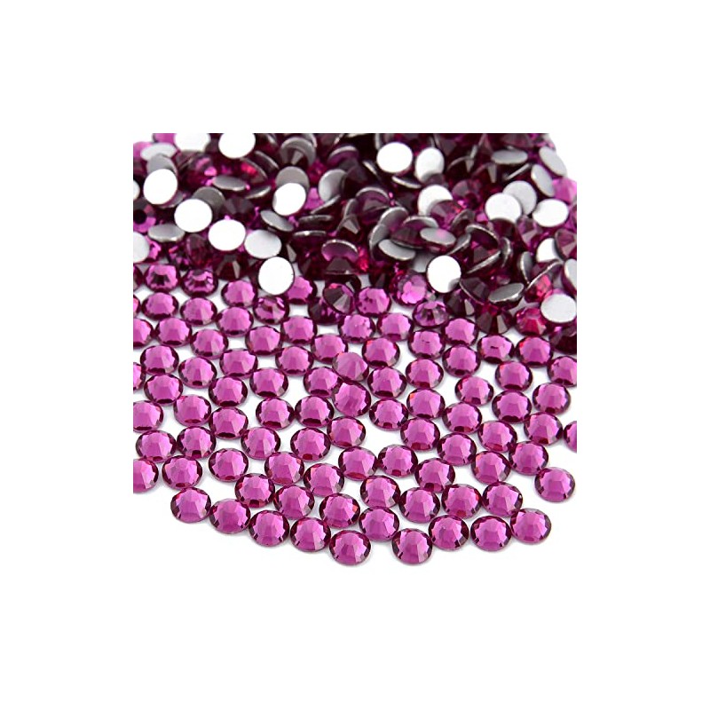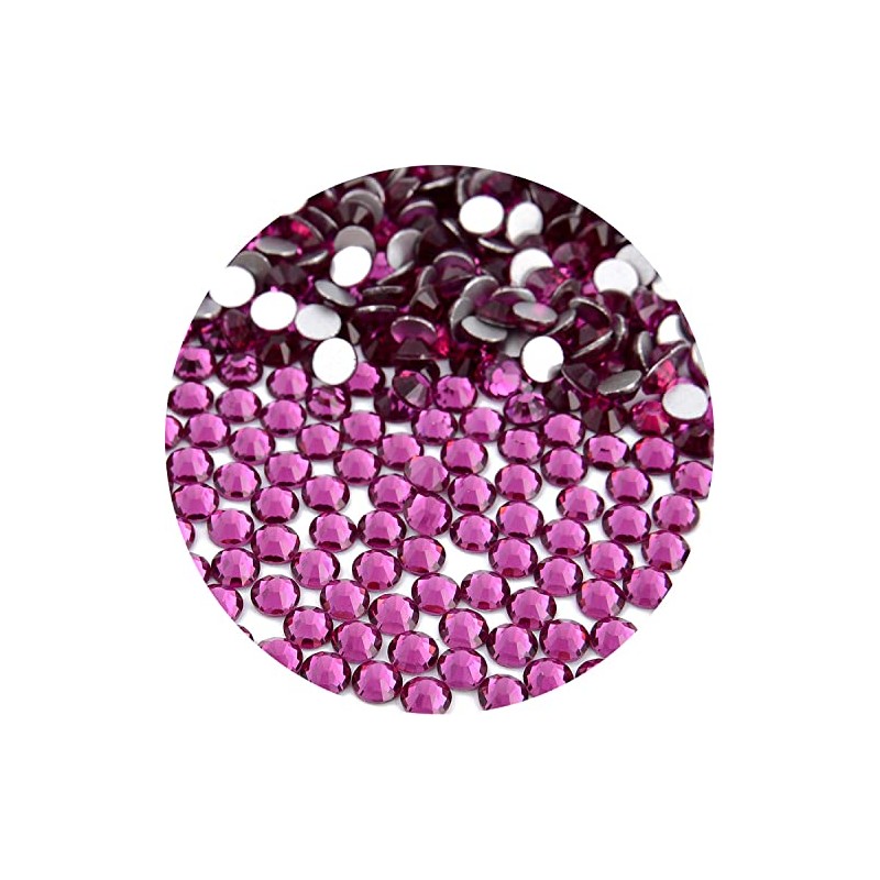 NCB 2000pcs Flatback Round Glass Nail Art Rhinestones Crystal for DIY Making Accessories Shoes, Clothes, Face Art, Bags, Manicure (Fuchsia, SS12 2000pcs)