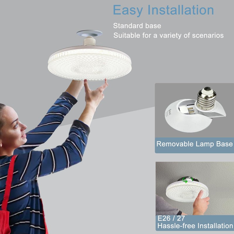 • 【Quality Lighting】With an extraordinary output of 4000 lumens and a high-quality cool white light at 6500K, this UFO LED light bulbs deliver instant brightness to any space, making them perfect for any room in your home or office.