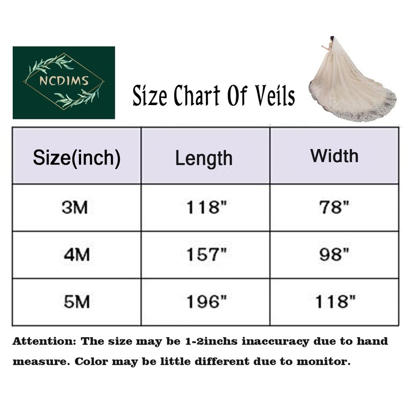 - Customized size, different length, width or tier, and color are also available. If you need a custom veil, please contact us.