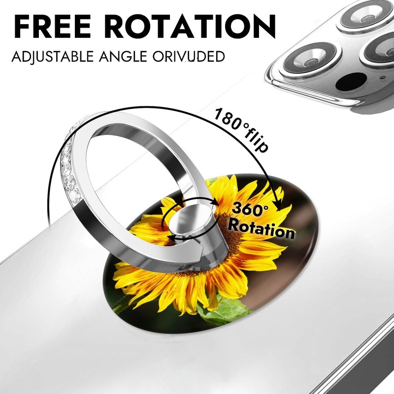 NCHomesy Cell Phone Ring Holder for Smartphone,360 Degree Rotation Finger Kickstand Phone Diamond Ring Stand Grip - Bright Yellow Sunflower
