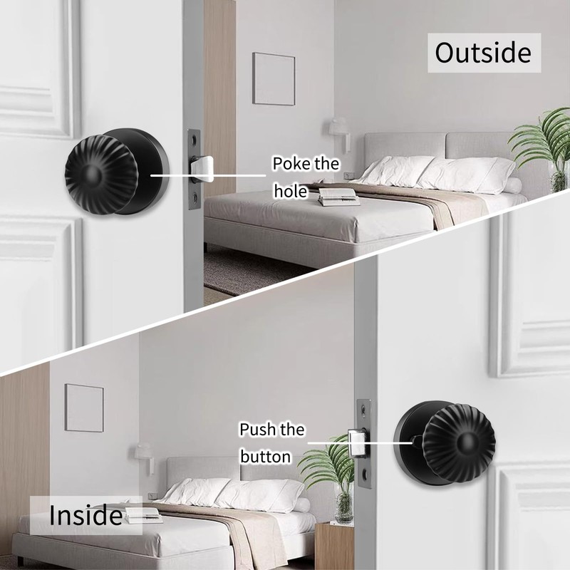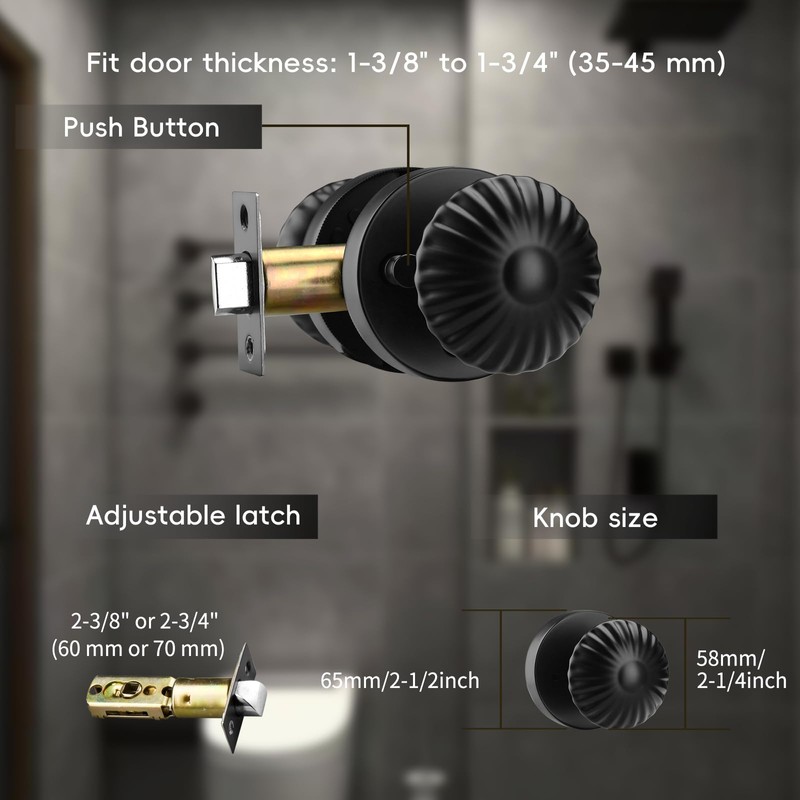 • KNOB WITH PUSH LOCK: This interior door knob with push button lock is widely suitable for vintage style, exterior rosette with small hole, interior rosette with push button, you can release lock by the tool if any emergency, interior knob always turns and even if the button locked, knob turns to release lock also.