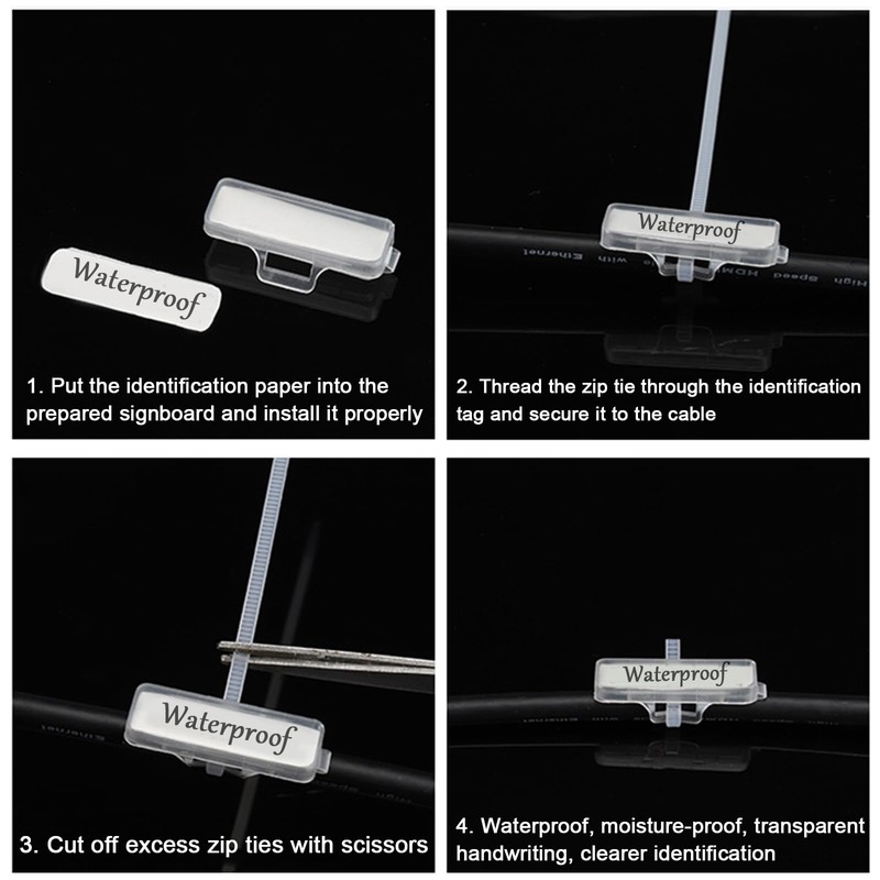 - Easy to use: mark the sticker with a pen, stick it in cable labels detection box, cover the lid, insert cable ties through both ends of the box and tie it to the cable, and finally peel off the excess cable tie, and you can