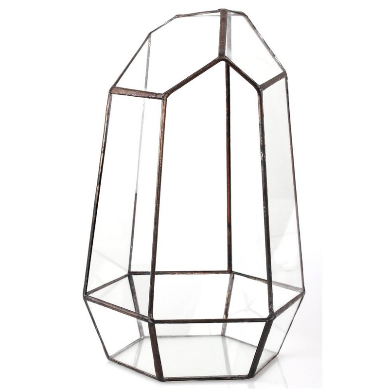 1\. High quality geometric terrarium, made of framed transparent glass. It is ideal for raising succuents and cacti. It is also stuitable for planting tropical plant varieties, such as mosses, orchids, ferns, and air plants. 2\. It is geometric, so it can be placed on any side down according to where it is put and what you are going to grow. 3\. Geometric terrarium is a great decorative piece on your desk, table, shelf, etc. 4\. Terrarium is a decent way to raise plants and watch them, without dirting your room. 5\. A geometric terrairum will be a great centerpiece on a wedding, party. 6\. Many people love to create their dreamy world, or a fairy story within a terrarium. 7\. Those terrarium can be used as candle holder (please choose LED candles, it is not designed for high temprature). 8\. A super mini miniature figure is included as free gift. 9\. Special features: This is a irregular prism geometric terrarium, great for centerpiece. It is large. The height is 25cm. 10\. General Material: Glass, Metal 11\. Dimensions : 6.5*5.7*9.9inches Assembly Details: no assembly required Shape: irregular prism Please note: Plants are not included