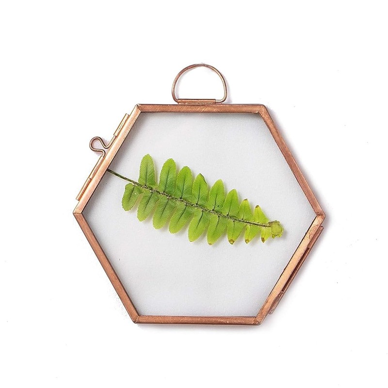 NCYP Hanging Small Rose Gold Hexagon Herbarium, Side Length 1.9 inches Handmade Copper Frame for Pressed Dried Flowers Plants, Double Glass, Floating Frame, Glass Frame Only