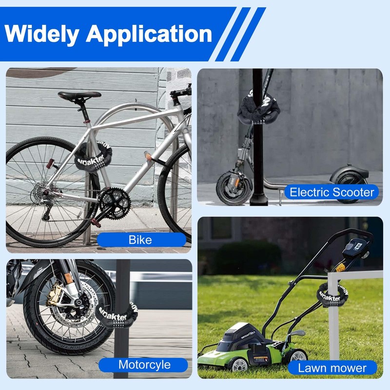 - STURDY & DURABLE: It's hard to break through as the lock cylinder of the bike lock is made of zinc alloy. The bicycle chain lock is made of 0.24 inch alloy steel which is drill-resistant and anti-tech unlocking.Safety tip: Please do not leave your bike out of your sight for too long, especially in high crime areas, no bike lock is 100% safe.