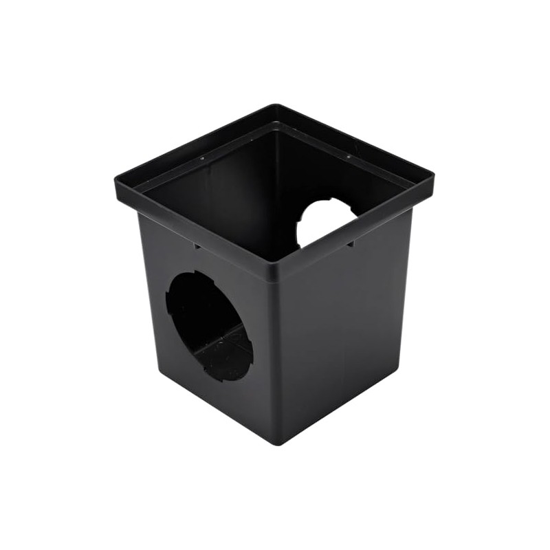 NDS 1200 Square Catch Basin Drain with 2 Openings, Connect to 3 Inch, 4 Inch, 6 Inch & 8 Inch Drain Pipes, Manages Heavy Water Flows, 12 Inch, Plastic, Black