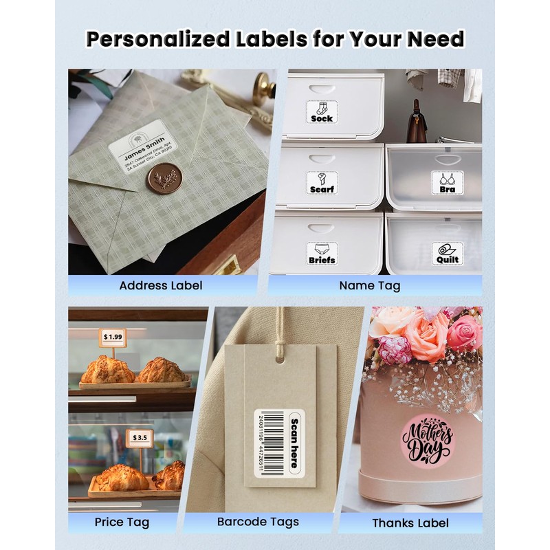 - 𝐖𝐢𝐝𝐞𝐥𝐲 𝐔𝐬𝐞𝐝 𝐟𝐨𝐫 𝐁𝐮𝐬𝐢𝐧𝐞𝐬𝐬 𝐚𝐧𝐝 𝐎𝐟𝐟𝐢𝐜𝐞: The N20 thermal label maker machine supports printing labels that are 3/4 inch-2 inch wide, use for small businesses (price tags, brand logo, product information, barcodes, QR codes, address labels), for office and school (folders, dates, name tags, item identification), for home organization (food container, kitchen storage, cosmetics marking).