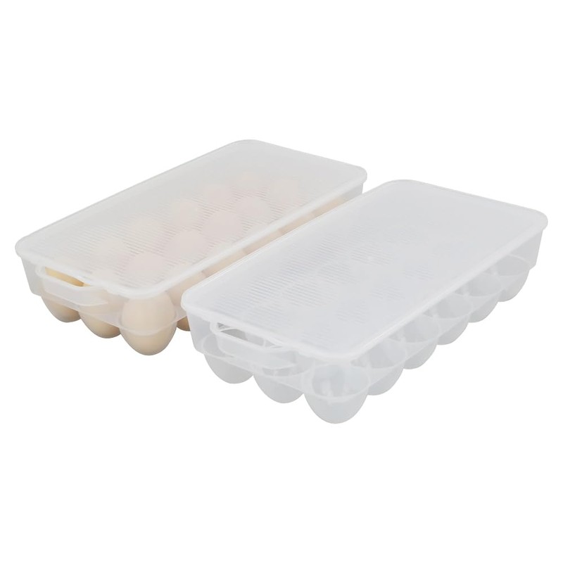 - A single egg box can hold 18 eggs, pack of 2 can store a total of 36 counts