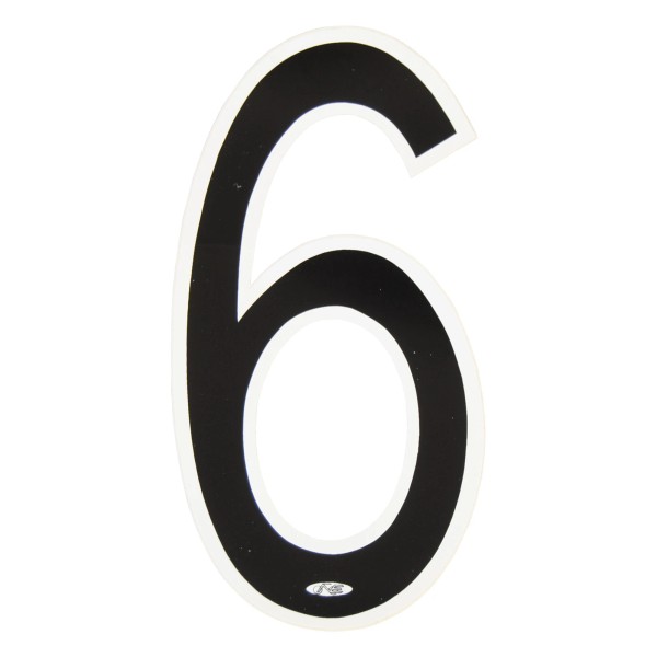 Neal Enterprises PROLINE 6" Number Plate Number #6 BLACK with WHITE outline NOS!