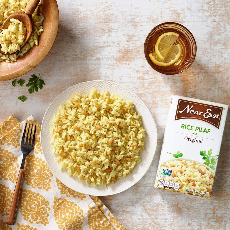 Based on Hannah Kalajian's recipe, the founder of Near East, our Original Rice Pilaf is made from premium parboiled long grain rice, toasted orzo and a delicious blend of herbs and spices. Near East Rice Pilaf Mix is Kosher Certified.