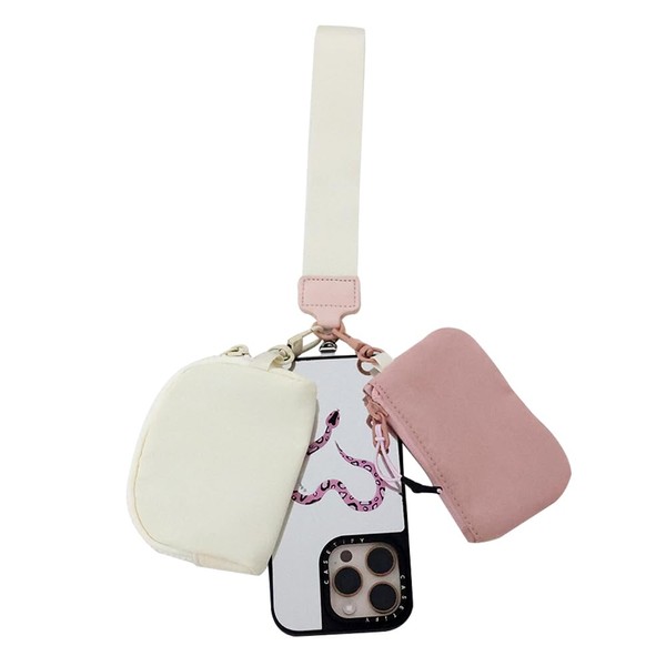 Nearawing Dual Pouch Wristlet Wallet for Women - Phone Wristlet Wallet with Detachable Keychain, Lightweight Mini Coin Purse & Portable Card Pouch (Pink+White, 4.33"×3.35")
