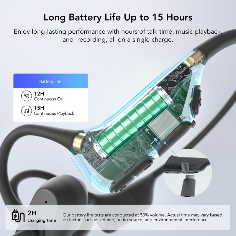 • Ultimate Comfort & Long Battery Life: With an open-ear design, our headphones provide comfort and safety while keeping you aware of your surroundings. Weighing just 31g and crafted from skin-friendly silicone, they offer a lightweight fit ideal for extended wear. Enjoy up to 15 hours of music playback or 12 hours of talk time on a single charge, combining all-day comfort with long-lasting battery life, so you stay connected without compromise.