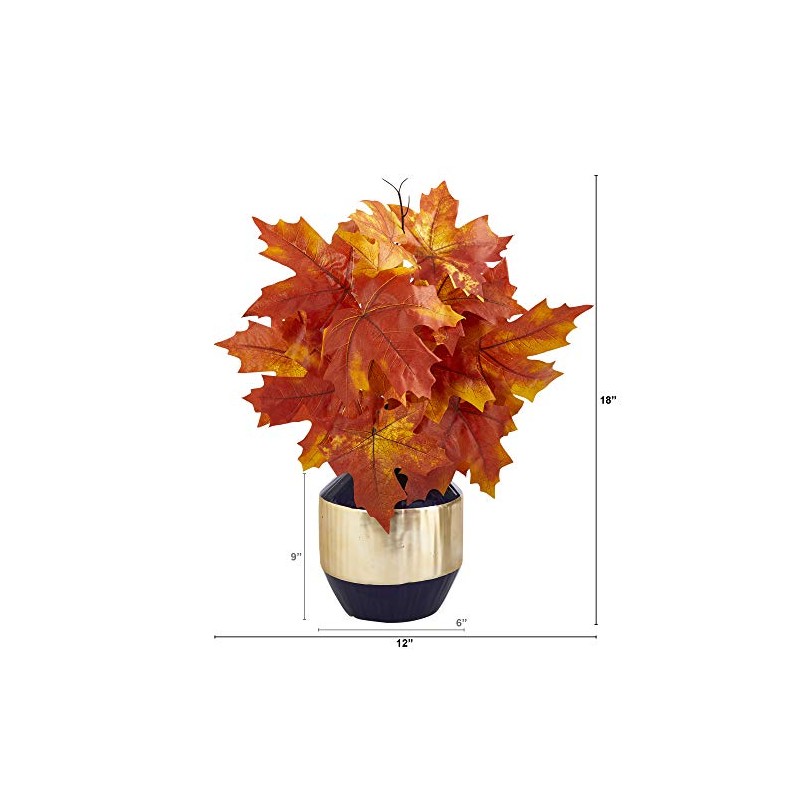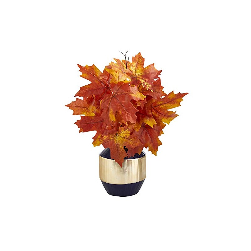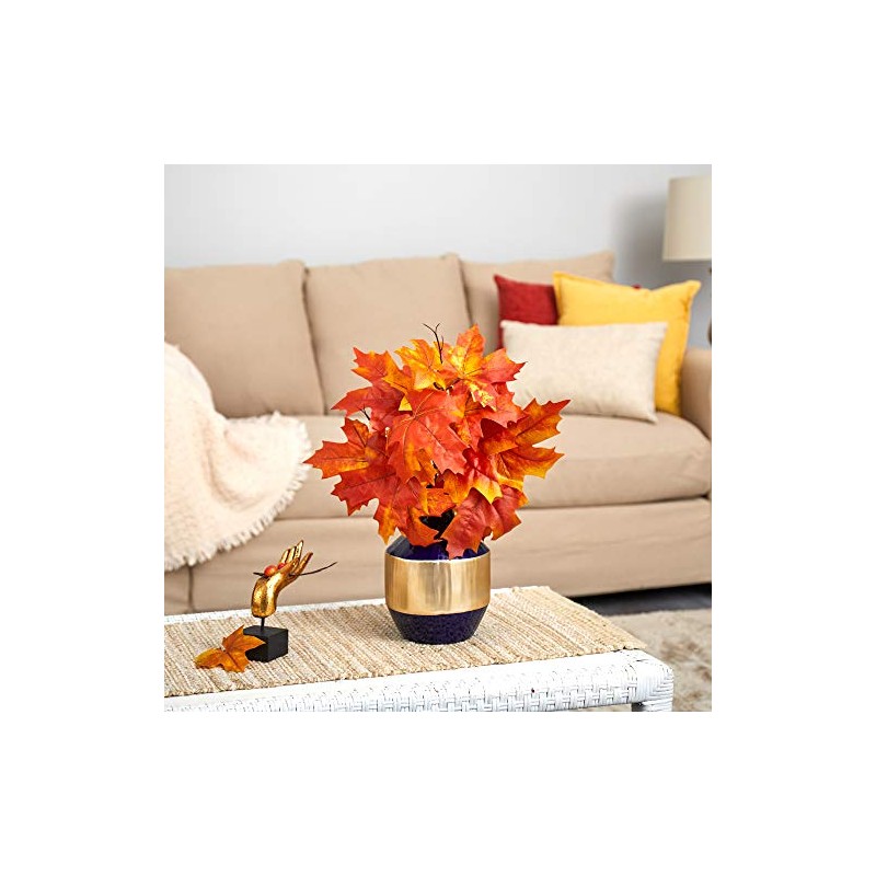 Nearly Natural 18in. Autumn Maple Leaf Artificial Plant in Blue and Gold Planter