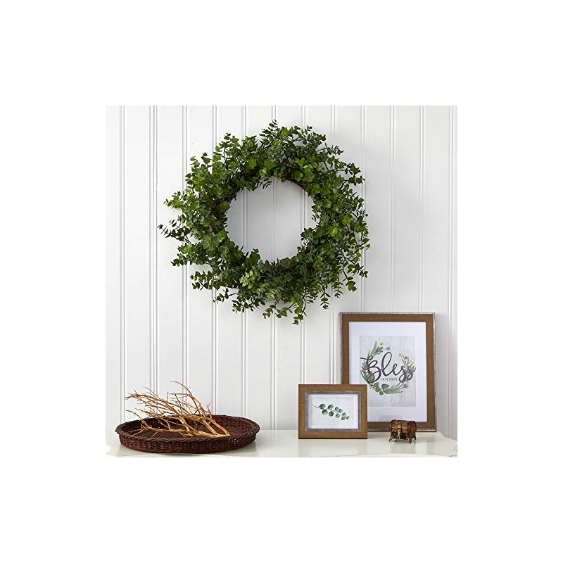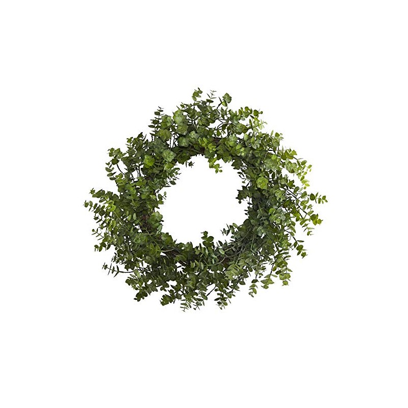 - HOME DECOR ACCENT: Bring some serene, natural foliage to your home with this Eucalyptus Artificial Wreath. Add some curb appeal to spaces in need of life with the soft touches provided by the realistic looking eucalyptus leaves. Perfect for wall and door displays, this wreath has a diameter of 24”, and can easily blend with existing décor and bare spaces that need a little love.