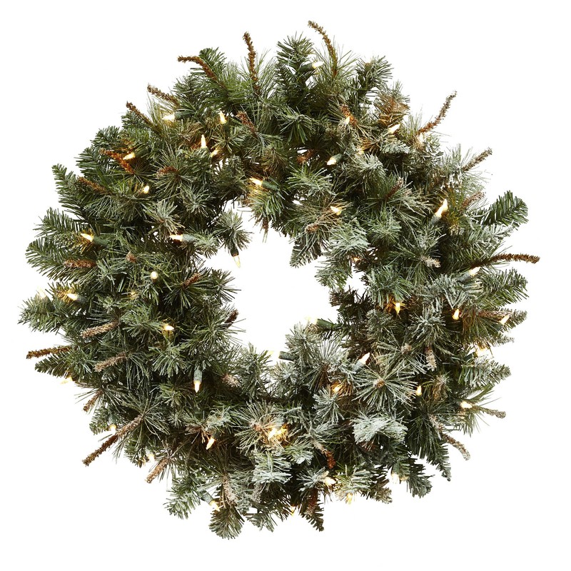 Nearly Natural 30" Lighted Frosted Pine Wreath