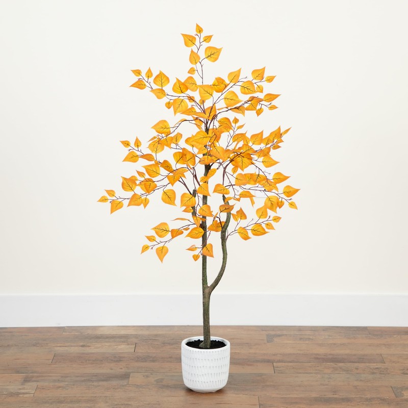 - EFFORTLESS SETUP AND VERSATILITY: Easily integrate this 4 ft. Autumn Birch Artificial Tree into any space with its included white decorative planter; perfect for enhancing living rooms, offices, or entryways with a touch of fall; bendable branches allow for personalized styling to suit your decor needs.