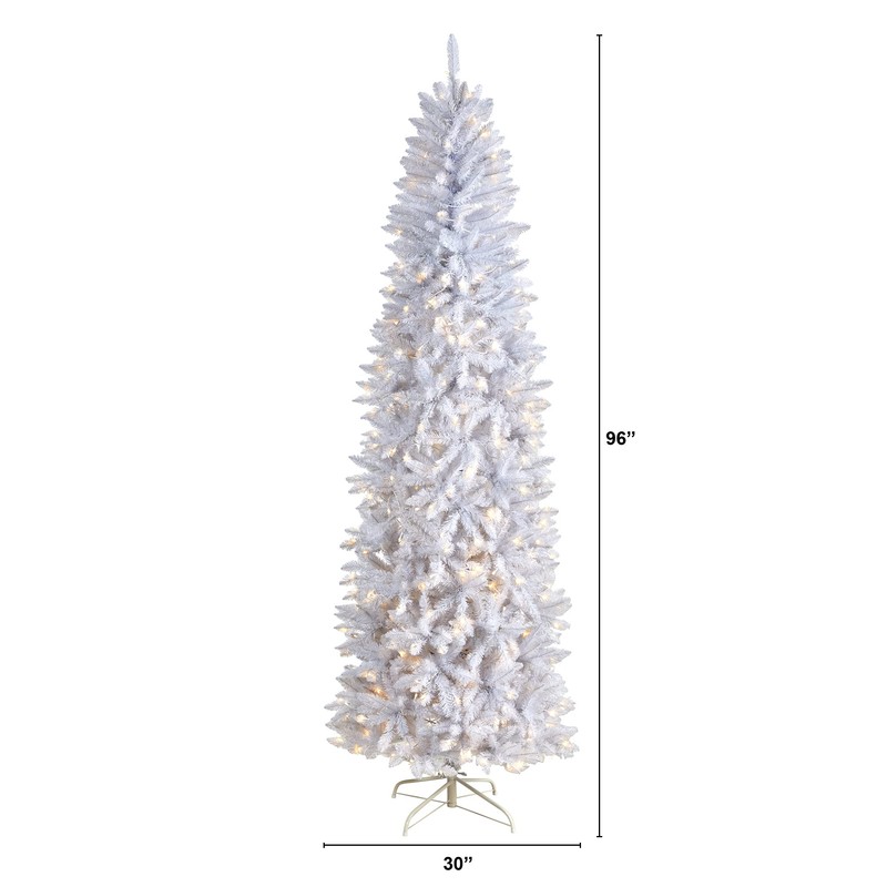 Nearly Natural 8ft. Slim White Artificial Christmas Tree with 400 Warm White LED Lights and 1348 Bendable Branches