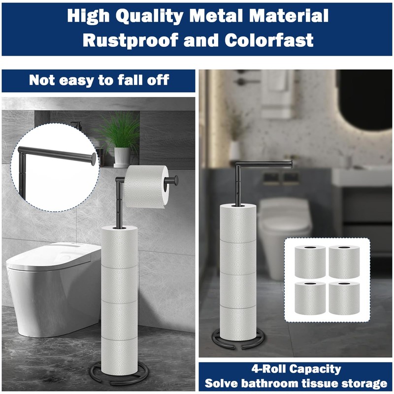 - PREMIUM MATERIAL: Paper roll holder made of premium metal materials, refined by high temperature baking, it is not easy to rust, not easy to fade, it works well in wet environments and long-lasting