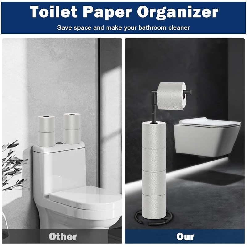 - SPACE-SAVING: Efficiently dispenses one roll of toilet paper while storing multiple additional rolls, solve tissue storage problems. Toilet paper holder convex design at the horizontal paper towel to keep the paper towel falling off