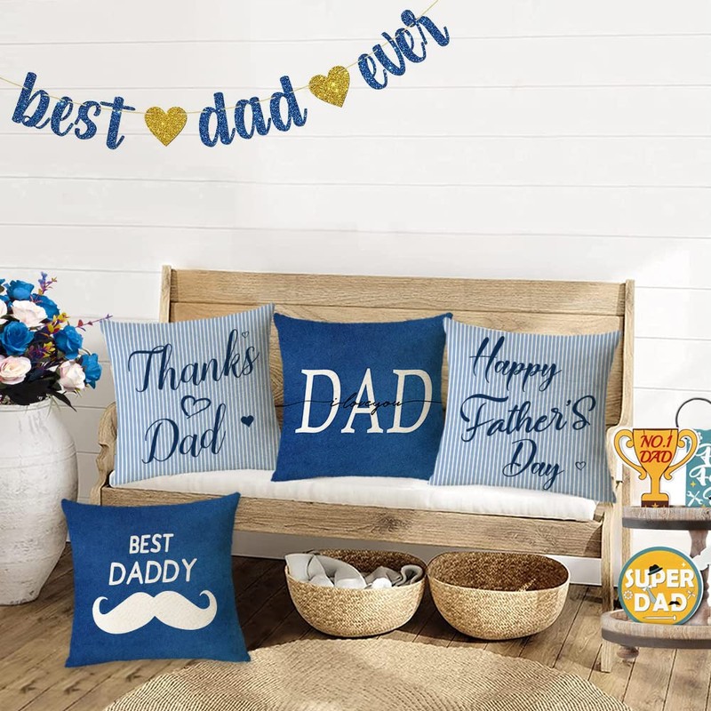 - ❤ PACKAGE INCLUDED ❤ :Set of 4 Fathers day Pillow Covers, No Insert or Filler. Pattern is only on the front and no printing on the back! The blue stripes pillow covers can help you change Fathers day home decorations quickly and refresh your room.The blue Dad pillow cases are printed with blue love heart elements,which are perfect decorations for Fathers day or dad birthday party decorations.